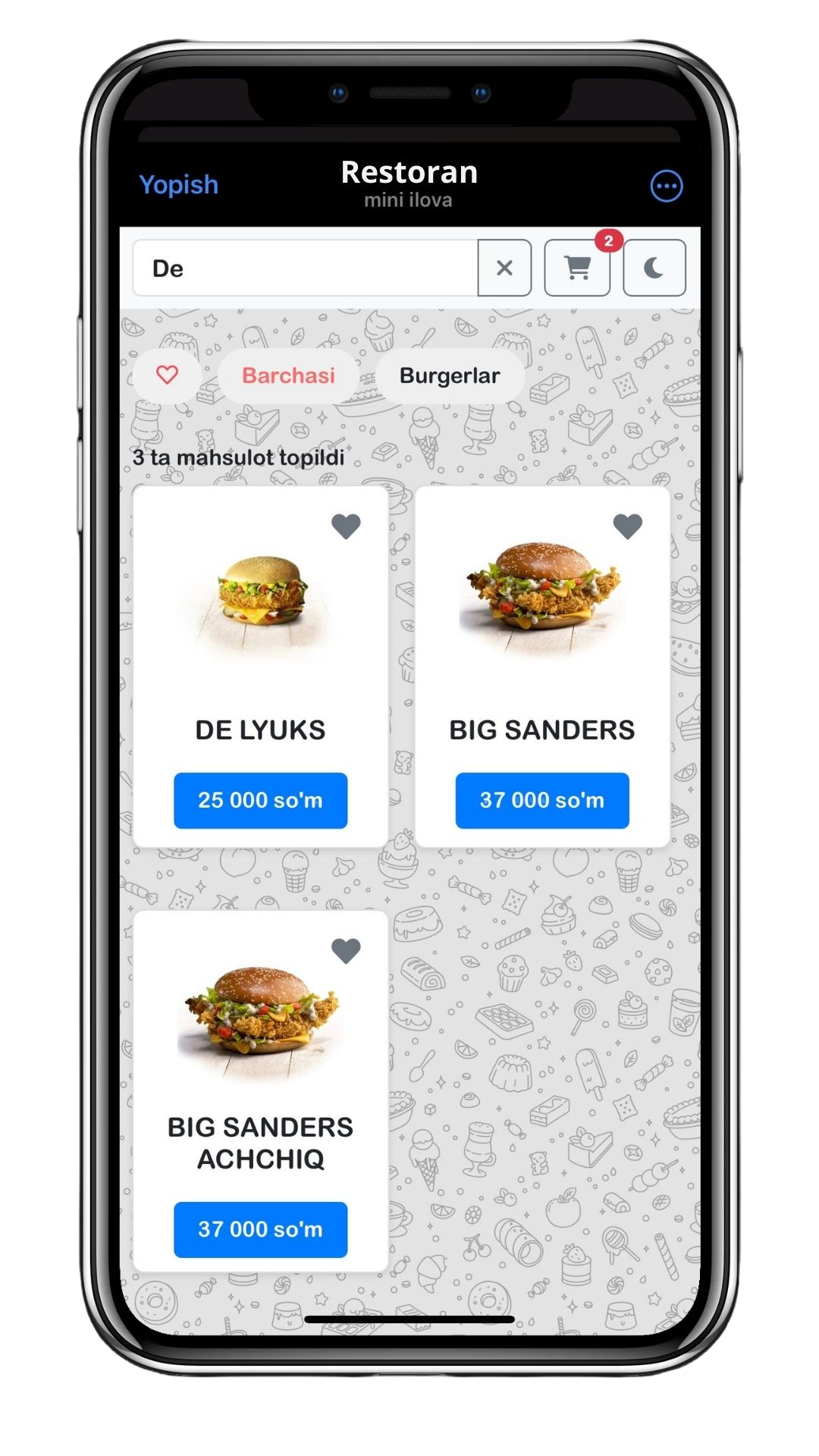 Hozirda odamlar messenjerlarda juda ko'p vaqtlarini o'tkazadilar, muloqot qiladilar va yana ko'plab ishlar qiladilar . Biz sizga Telegramda tayyor dastur yaratishda yordam beramiz, u yerda mehmonlar buyurtma berishlari mumkin, siz esa o'z mijozlaringizni ko'aytirishingiz va restoraningizni rivojlantirishingiz, eng muhimi, ko'proq buyurtma olishingiz mumkin.